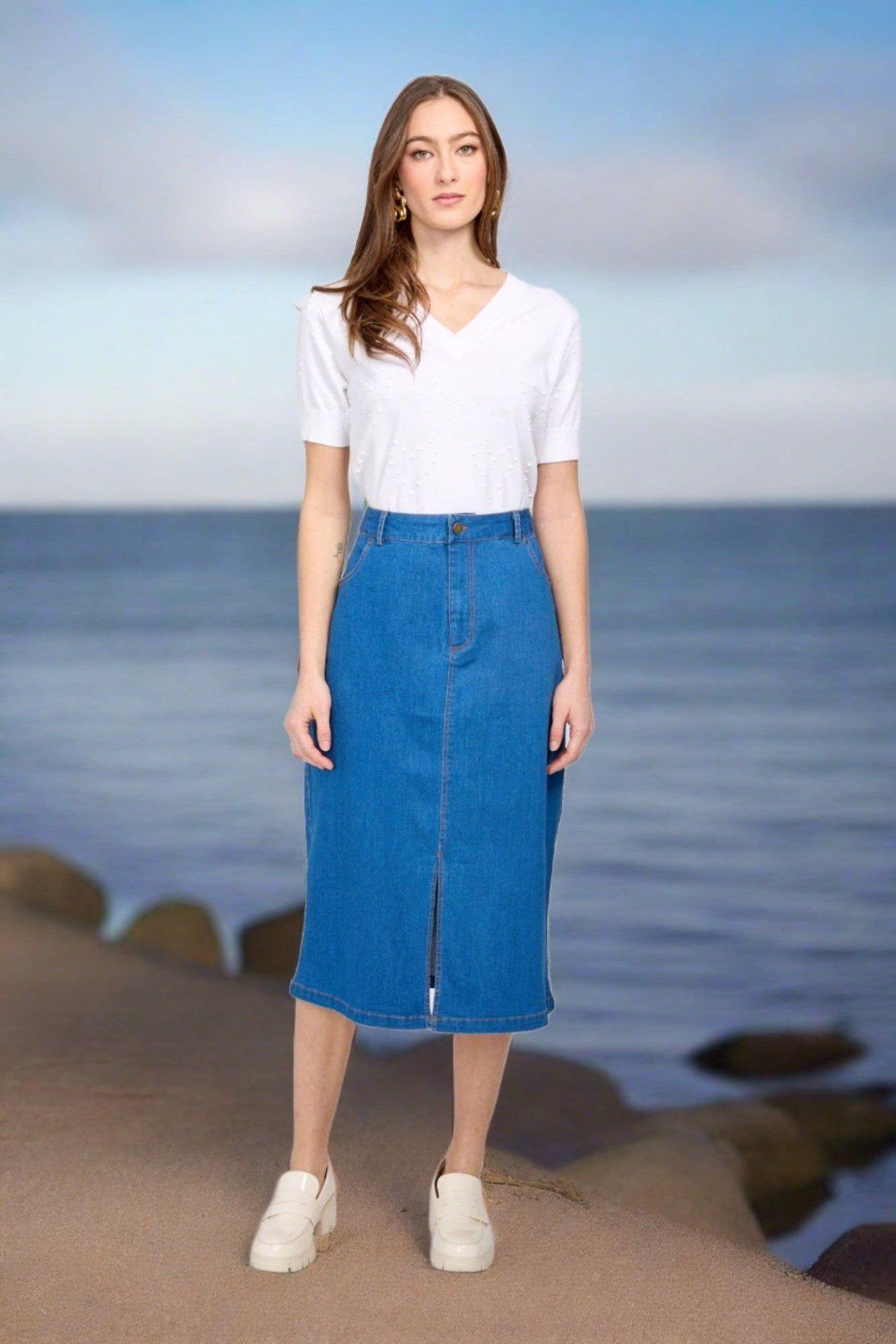 Chic Denim Long Skirt with Front Slit - *One Left*