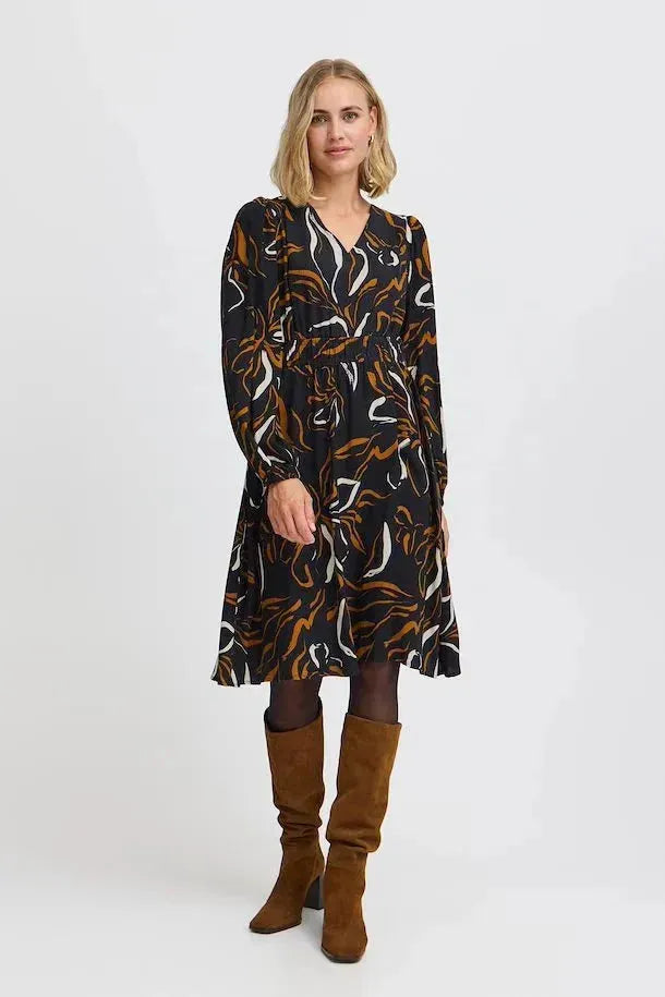 Froline Dr2 Knee Length Dress in Fall Black Mix by Fransa