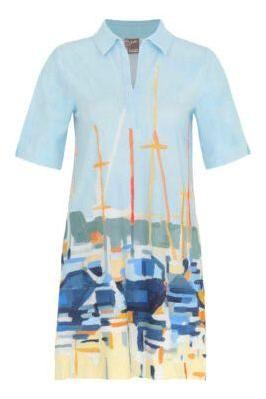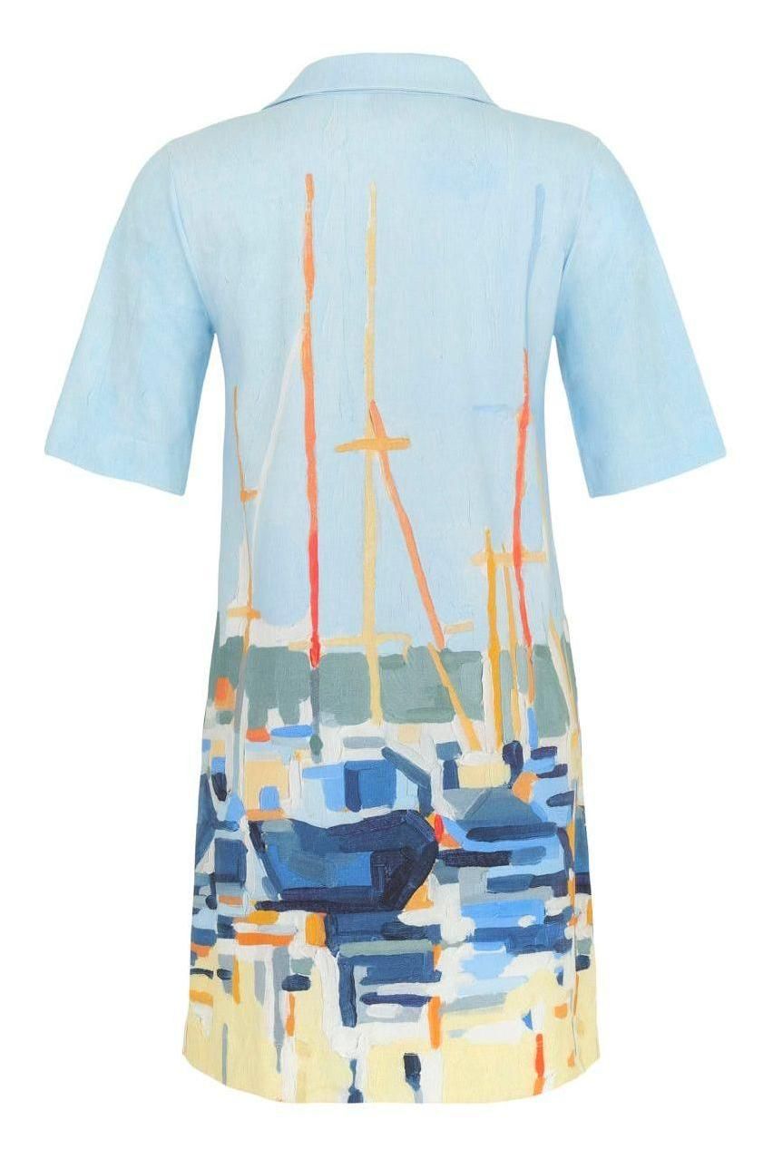 Introducing the Marina Interpretations Shirt Dress by Dolcezza! Designed by artist Emma Caroline, this elegant piece features a flattering V-neckline, all-over print, and two side pockets with contrast stitch detail. Perfect for warmer months and holidays, the A-line silhouette and side hem splits add a touch of style to this easy-to-wear dress.