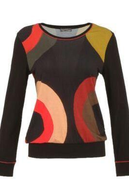 Introducing the Moving Target Long Sleeve Top - the perfect combination of comfort and style! Made with soft and stretchy viscose fabric, this top features a bold abstract target print design, contrast border and long sleeves. The straight silhouette looks great with any bottom, making it a versatile addition to your wardrobe.