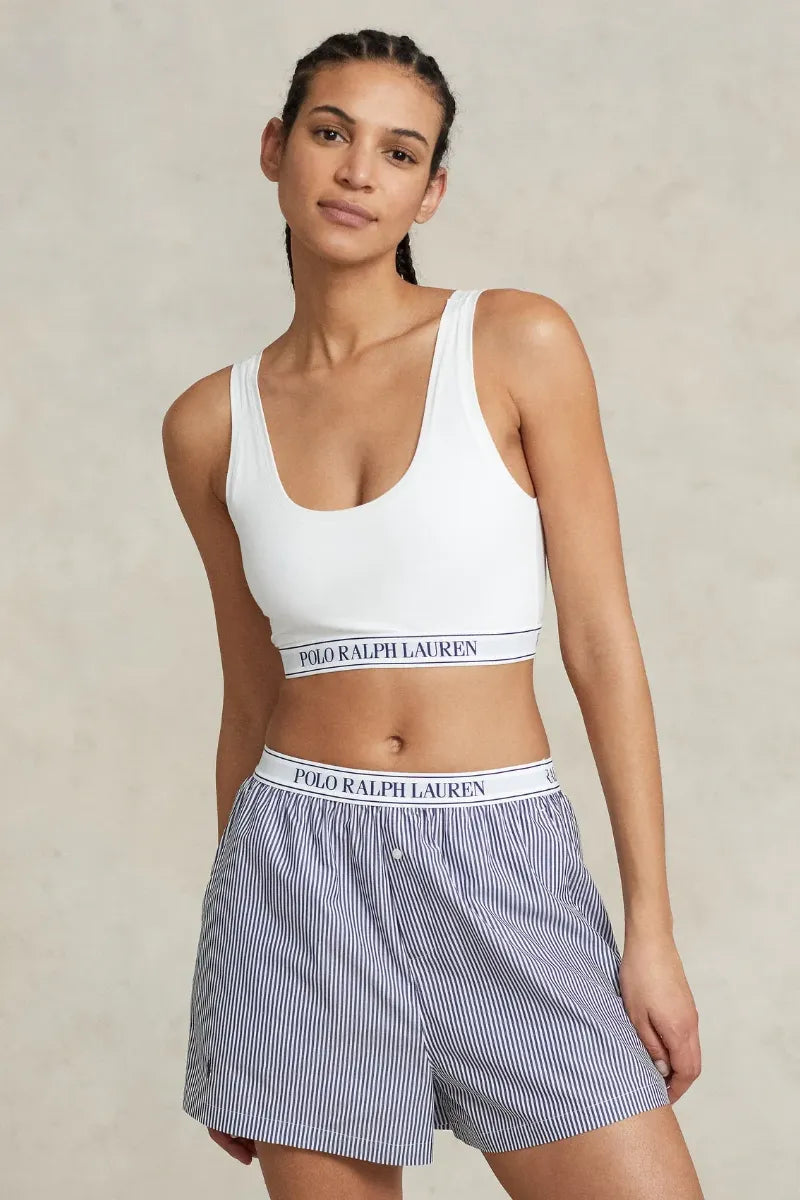Polo Ralph Lauren Logo Boxer for Women in White Cloud Beacon Blue Stripe