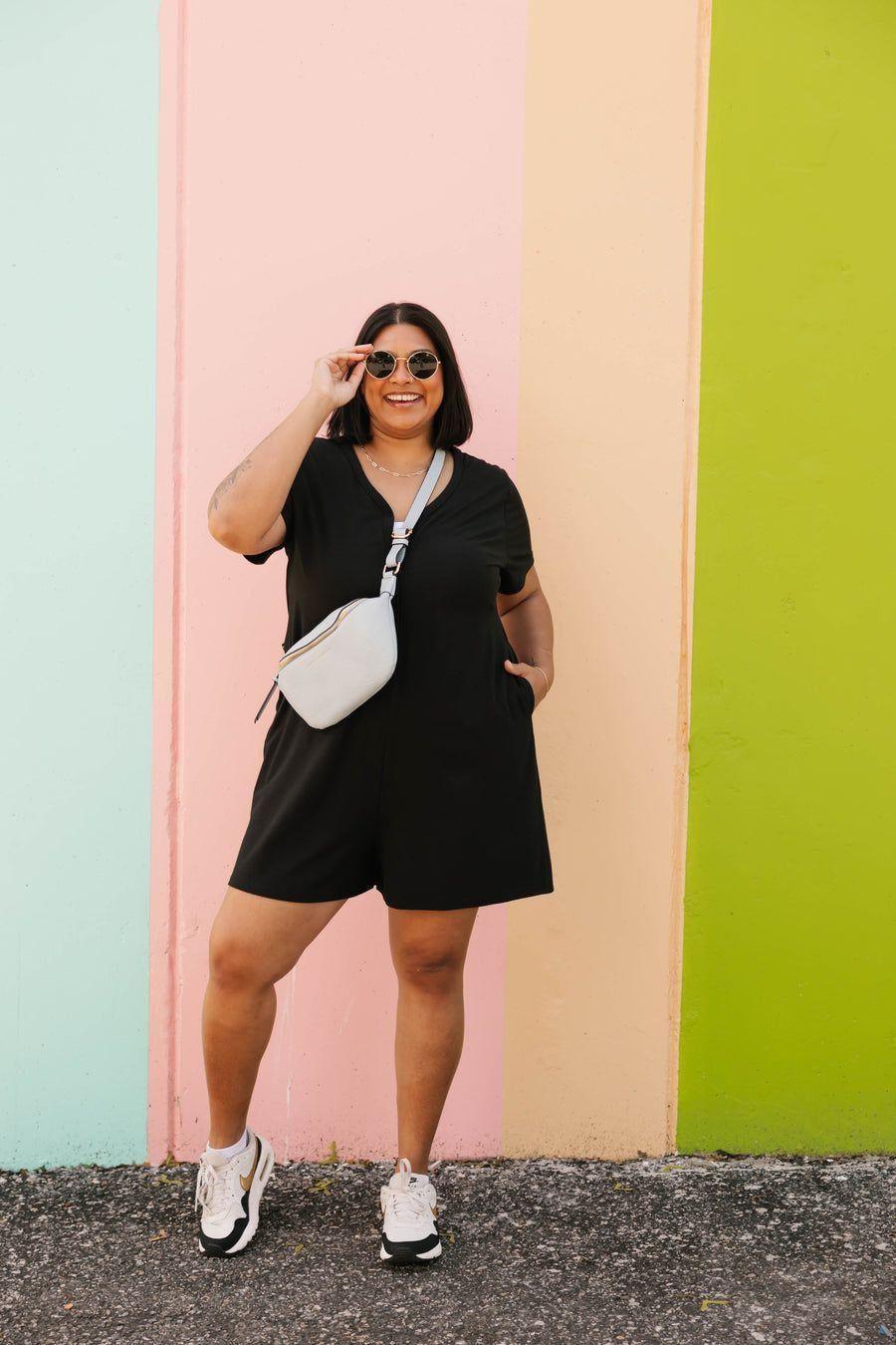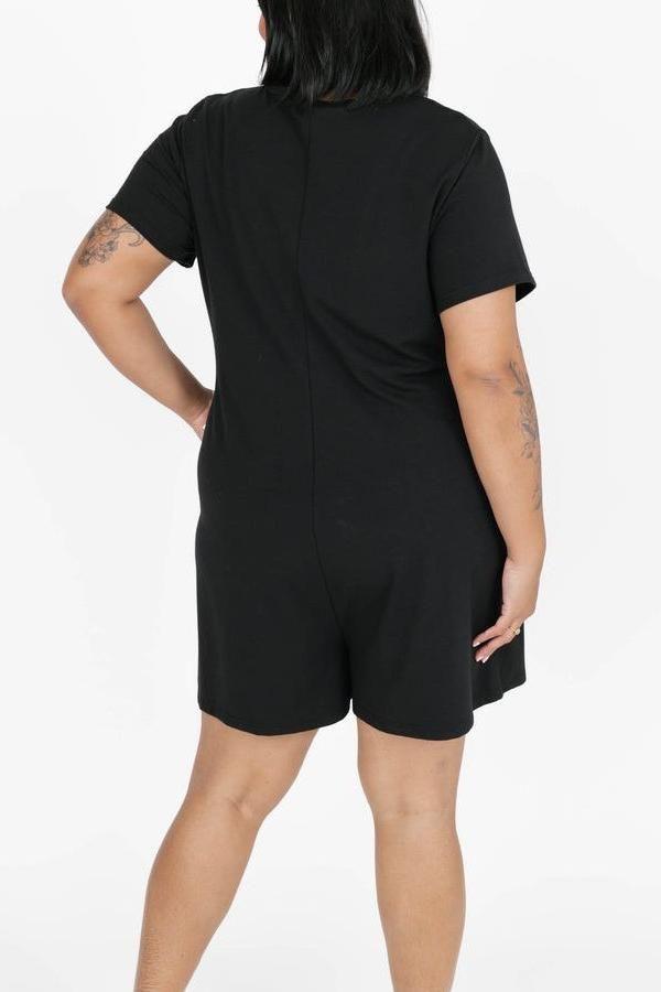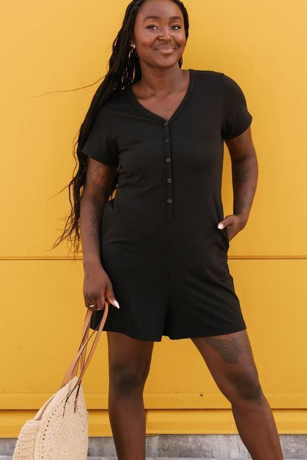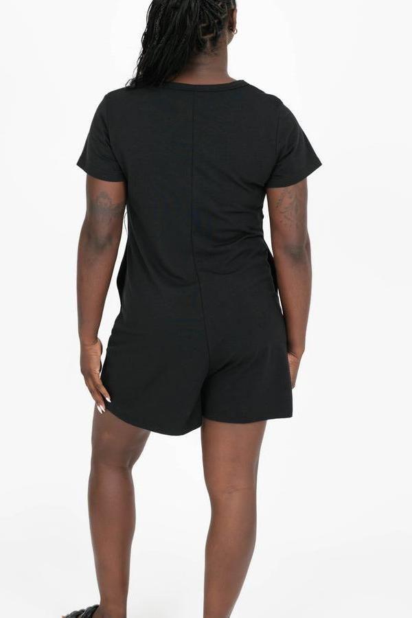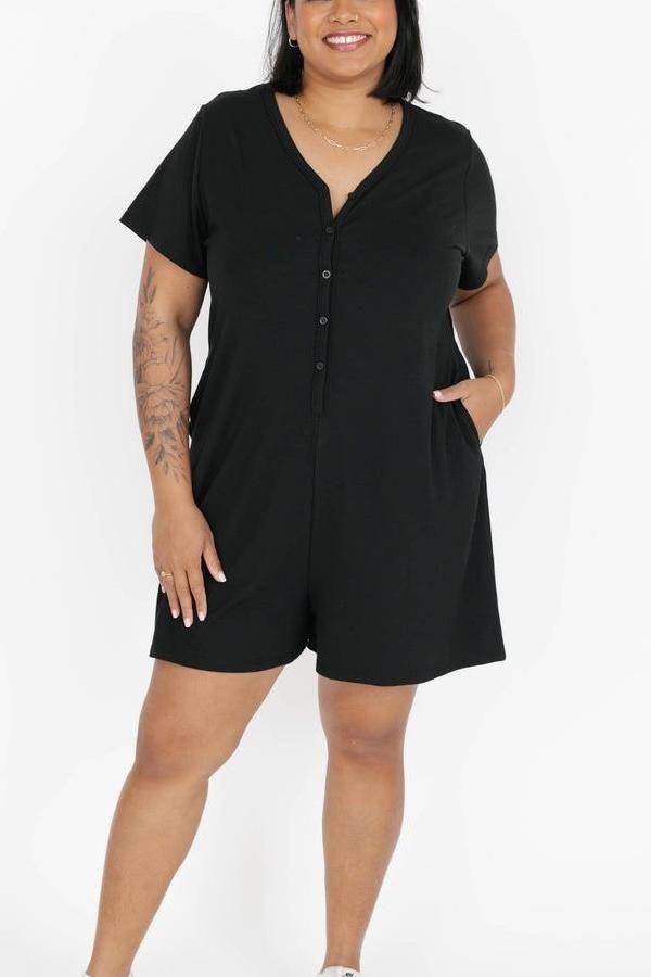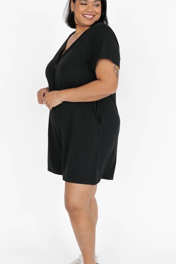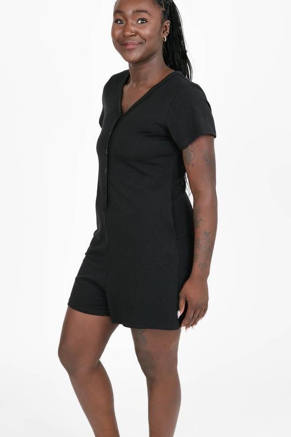 Sunday Henley Romper Shorty 2.0 in Midnight Black by Smash and Tess