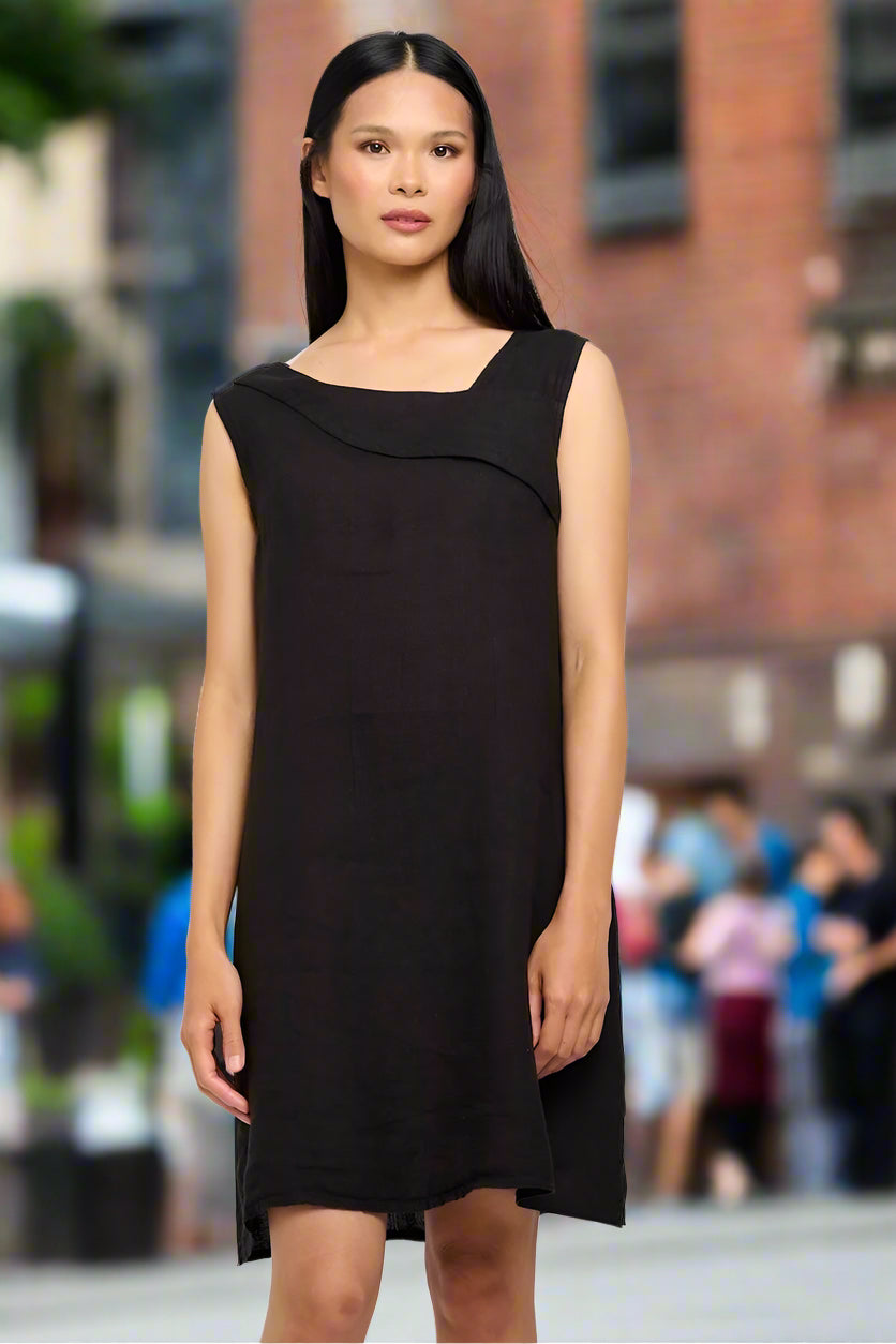 Women's Asymmetrical Linen Dress in Black by Pistache Apparel