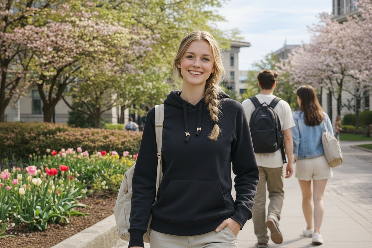 - Decorative seaming on hood and body