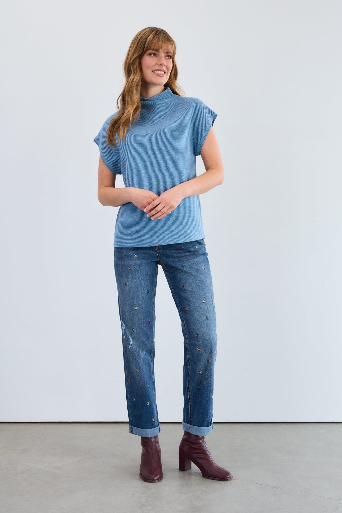 Women's Ottoman Cap Sleeve Sweater Vest in Indigo by French Dressing Jeans 1012333