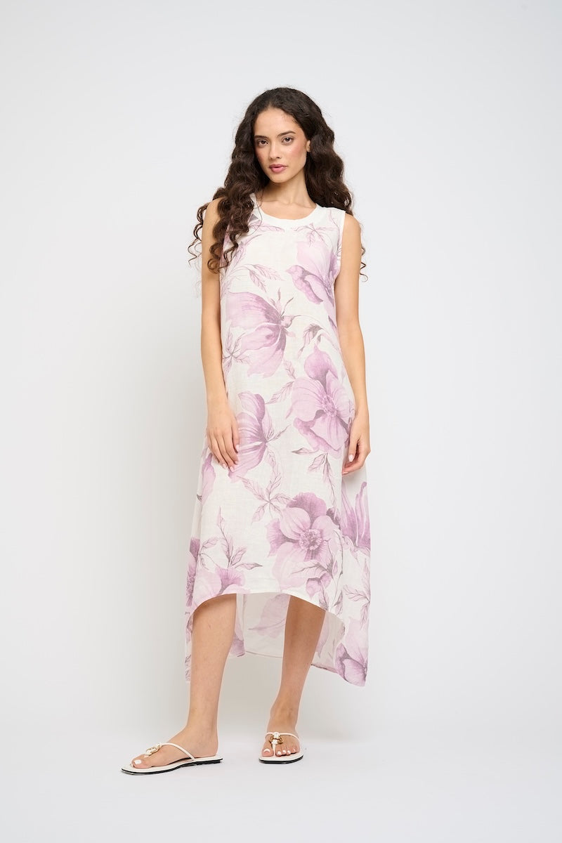 Women's Sleeveless Linen Dress by Pistache in a Lilac Floral Print