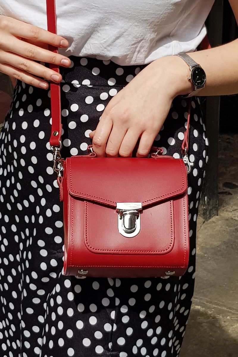 This classic leather small sugarcube bag is carefully handmade out of real leather in England. This cute collection of colourful sugarcube bags will fit any occasion and complement your look.